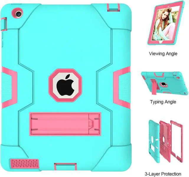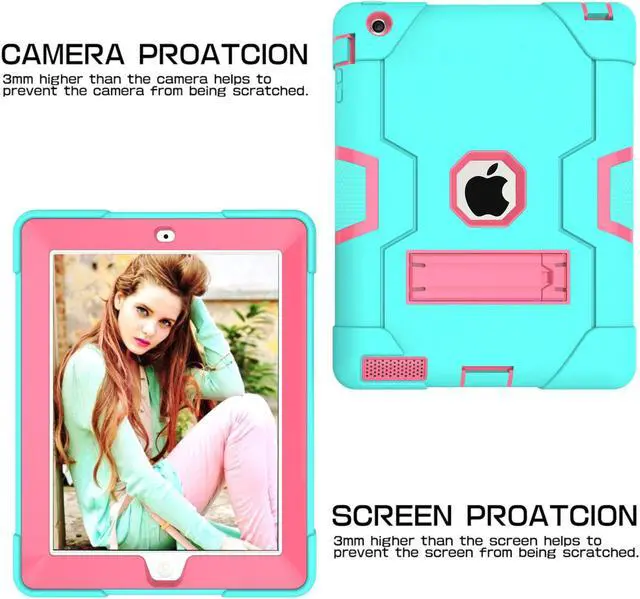 Full Body Protection & Premium Materials --- This iPad case is made of hard plastic frame + PC inner shell + durable soft Silicone(NO screen protector), the safe materials are also friendly to kids. 3-layer full body protection structure, which provides perfect protection for your iPad against drop, scratch, shock and dust.