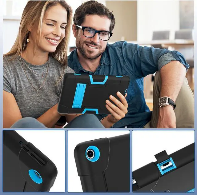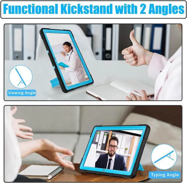Ptorective Case with Built-in Kickstand --- The protective case with built-in sturdy kickstand, offers you 2 angles like viewing and typing when you are playing or working. Free your hands and enjoy your watching or facetime with the tablet case.