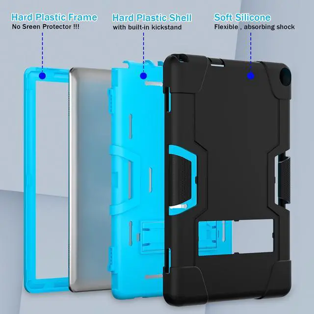 Full Body Protection & Premium Materials --- This case is made of hard plastic frame + PC inner shell + durable soft Silicone(NO screen protector), the safe materials are also friendly to kids. 3-layer full body protection structure, which provides perfect protection for your tablet against drop, scratch, shock and dust.