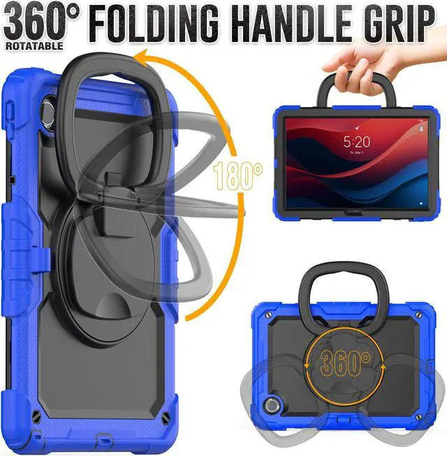 The back cover with built-ina folding kickstand is hidden inside. When the kickstand is extended, it can be rotated 360 degrees with the turntable to achieve different stand angles.You will have the stable angle for movie-viewing, typing, reading or face-to-face chattin.