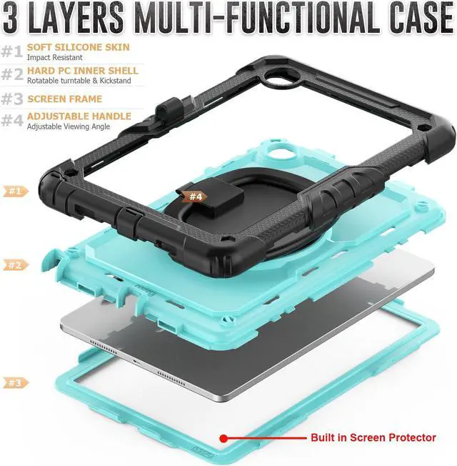 The with soft silicone edge, PC shell absorbs shock during drops and falls. The raised edge and 4 corners protection design can maximize protect your tablet , against accidental drops, shocks, and scratches in daily use.