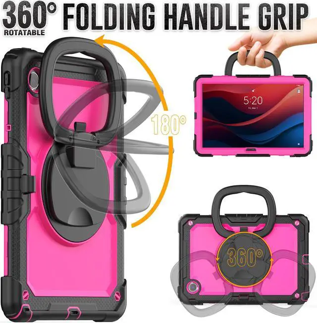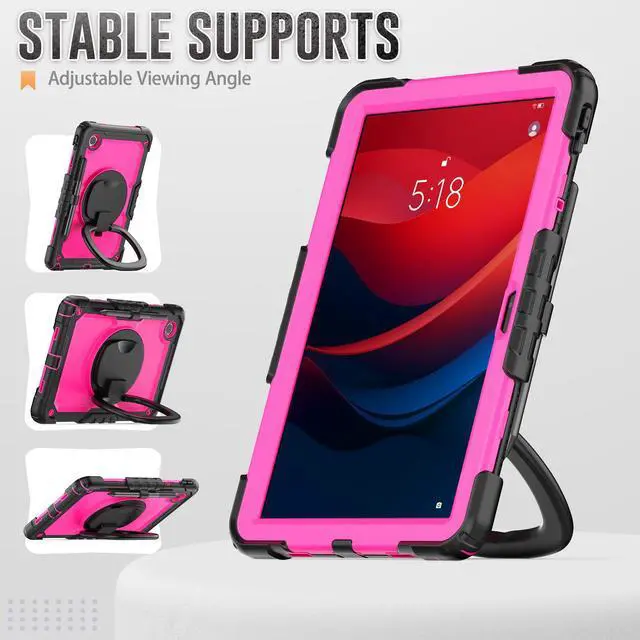 The back cover with built-ina folding kickstand is hidden inside. When the kickstand is extended, it can be rotated 360 degrees with the turntable to achieve different stand angles.You will have the stable angle for movie-viewing, typing, reading or face-to-face chattin.