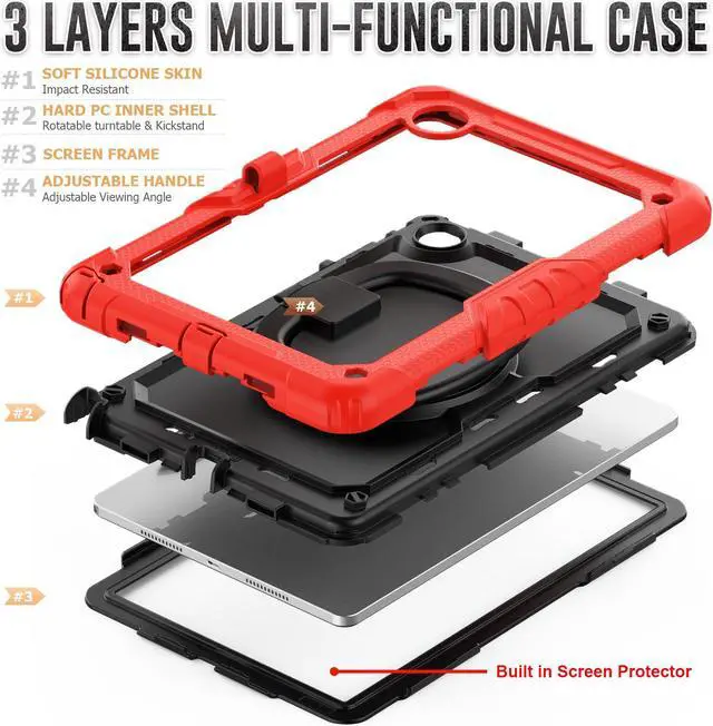 The with soft silicone edge, PC shell absorbs shock during drops and falls. The raised edge and 4 corners protection design can maximize protect your tablet , against accidental drops, shocks, and scratches in daily use.