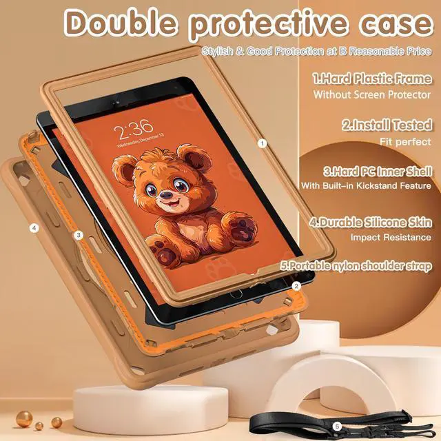 Full Body 3-Layer Protection: Three layer structure design, providing full body protection prevent from drops, shocks, bumps, scratches and dirt. No worry your iPad would slip out of your kids' hands and break. Full access to all ports, buttons and cameras without removing the case.