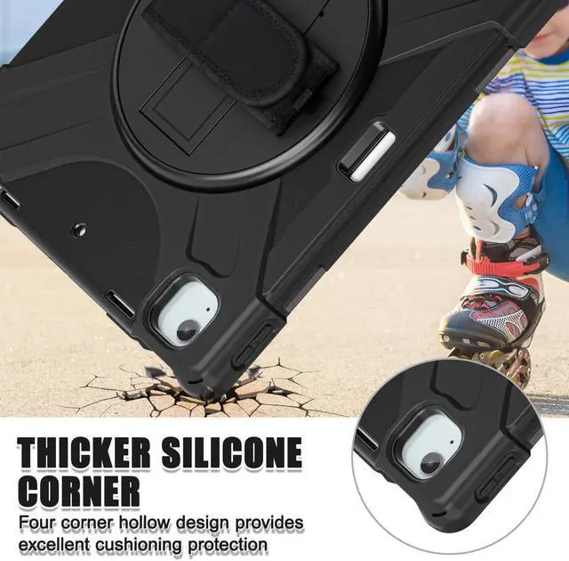 [SHOULDER & HAND STRAP]Elevate your outdoor iPad experience with the iPad Air 13 inch case featuring a shoulder strap,designed to free up hands and provide convenient outdoor carrying without the worry of accidental drops. Also features a hand strap that supports horizontal and vertical, ensuring a secure grip on the iPad during use to prevent accidental slips from hands.Stay connected and protected wherever you go with this versatile case designed for active lifestyles.