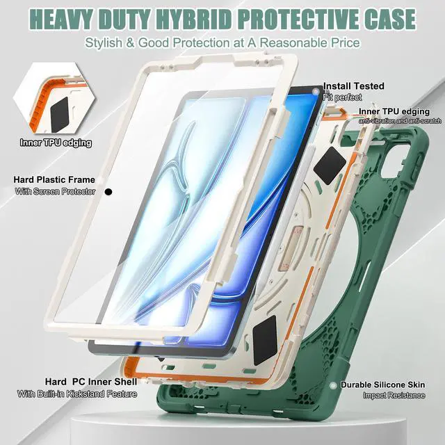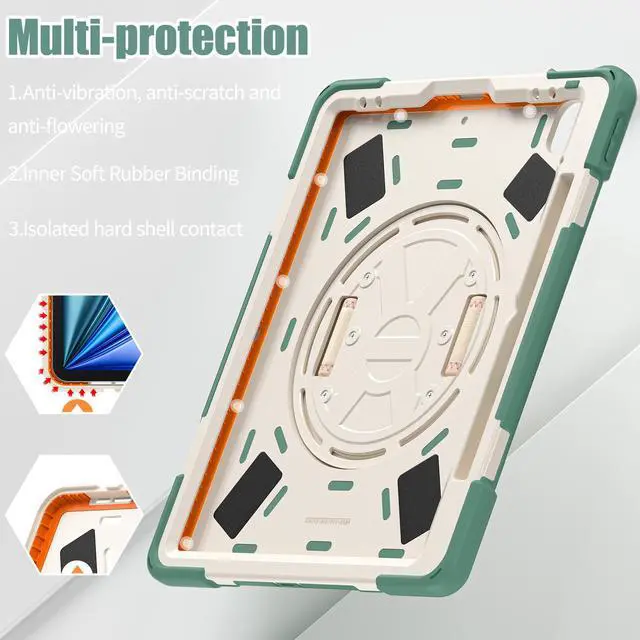 [SHOULDER & HAND STRAP]Elevate your outdoor iPad experience with the iPad Air 13 inch case featuring a shoulder strap,designed to free up hands and provide convenient outdoor carrying without the worry of accidental drops. Also features a hand strap that supports horizontal and vertical, ensuring a secure grip on the iPad during use to prevent accidental slips from hands.Stay connected and protected wherever you go with this versatile case designed for active lifestyles.