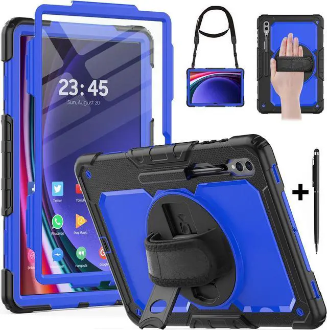 BONAEVER For Samsung Galaxy Tab S10 Ultra / S9 Ultra / S8 Ultra 14.6 inch Case with S Pen Holder Rugged Shockproof Protective Cover with Rotating Stand and & Shoulder Strap, Stylus Pen Blue