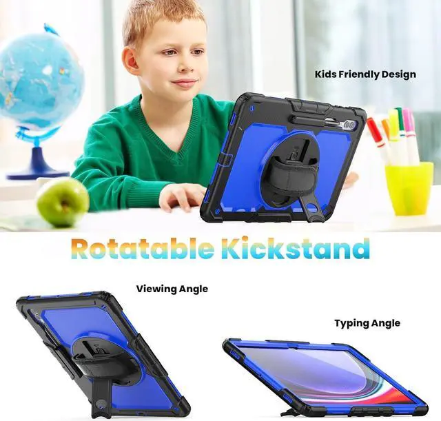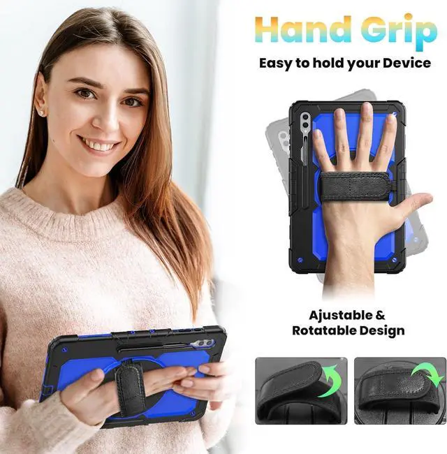 360° Rotatable Kickstand & Hand Strap: 360 degree rotatable kickstand offers multiple angles for viewing, typing and reading. Ergonomic and adjustable back handle allows you to grip your tablet securely and steadily with one hand, worry-free from dropping it