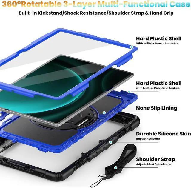 • 3-Layer Full Protection: Integrated front cover with built-in screen protector prevents scratches without sacrificing sensitivity or visibility. Advanced 3 in 1 construction with premium hard polycarbonate and impact resistant silicone material offers comprehensive protection for your tablet