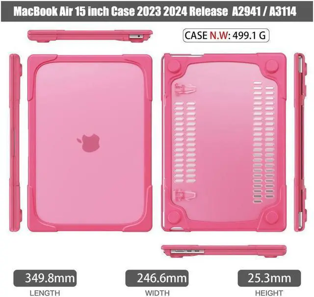 Compatibility: Exclusively designed for Only compatible with MacBook Air 15 case M4 M3 M2 Chip with Liquid Retina Display & Touch ID 2025 2024 2023 Release (models: A3241 & A3114 & A2941 - MC7A4LL/A, MW1L3LL/A, MW1G3LL/A, MW1J3LL/A, MC7C4LL/A, MW1M3LL/A, MW1H3LL/A, MW1K3LL/A, MC7D4LL/A, MC6L4LL/A, MC6J4LL/A, MC6K4LL/A, MRYU3LL/A, MRYP3LL/A, MRYM3LL/A, MRYR3LL/A, MXD43LL/A, MXD23LL/A, MXD13LL/A, MXD33LL/A, MQKR3LL/A, MQKW3LL/A, MQKP3LL/A, MQKU3LL/A, MQKT3LL/A, MQKX3LL/A, MQKQ3LL/A, MQKV3LL/A). Please kindly confirm the model before purchase.