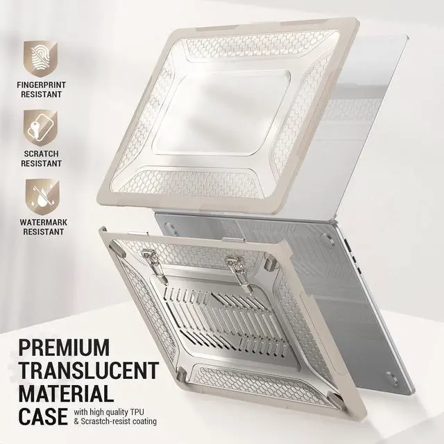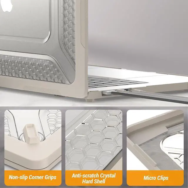 Premium armor and shock-absorbing material around the edge of the case keep your MacBook safe from drops, bumps, drops, scratches, and other accidental damage.