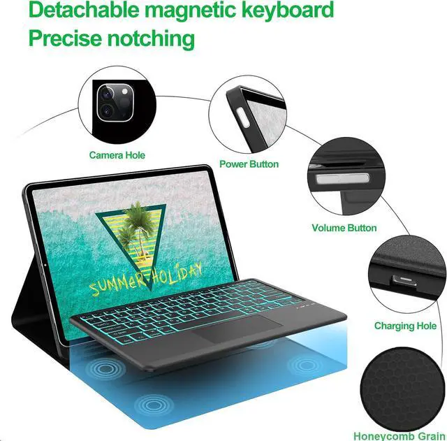 7-Color Backlight, Multi-Function Keyboard: Suitable for Samsung Tablet iPad Air 13 inch/iPad Pro 12.9 2022-2018 RGB backlight keyboard, 7 adjustable backlight colors, breathing light backlight mode can be automatically switched. The backlit keyboard can be used in the dark, providing a comfortable typing experience. Rich function shortcut keys allow you to use Samsung Tablet iPad Air 13 inch/iPad Pro 12.9 2022-2018 more efficiently and comfortably, such as editing documents, navigating applications, and creating presentations