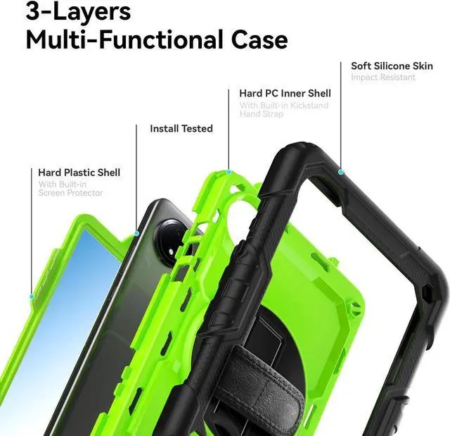 UPGRADED TRIPLE-LAYER FULL BODY PROTECTION - Advanced 3-in-1 construction, with 3 layers design silicone outer frame and 2 pieces Combination of hard reinforced inner shell. The Redmi Pad SE 8.7" case has passed the Drop Test, provides up to 7 ft drop protection, provides a full around protection against scratch, impacts and shock during daily use. All materials feature environmentally friendly and owns ROHS certification, no harms to women, men, kids, the old.