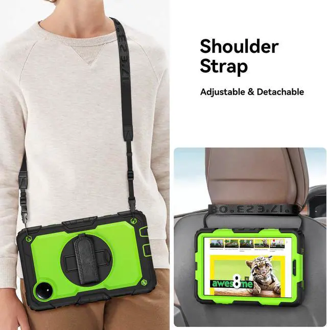 REMOVABLE & ADJUSTABLE SHOULDER STRAP - The portable shoulder strap helps you carry your tablet conveniently when you are at work, on a trip or outdoors. It can be attached to any two holes in the PC cover to carry your device vertically or horizontally like a messenger bag, or hang your Redmi Pad SE 8.7" in the kitchen, bedroom, car seat for convenient usage.