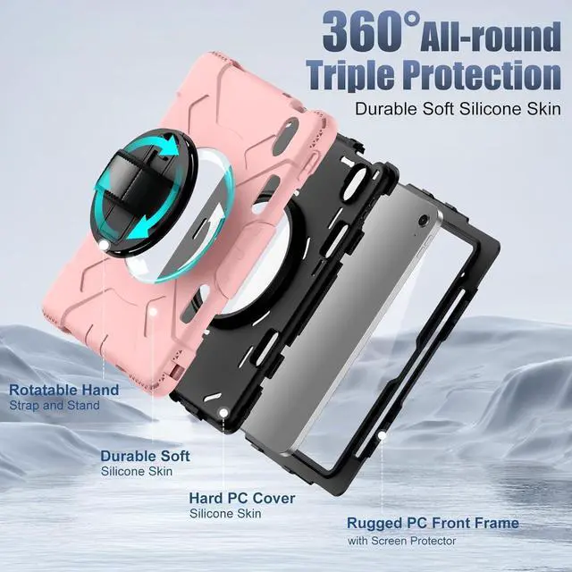 MATERIAL COMPOSITION: The case for iPad 11th/10th Generation has a built-in screen protector(it can be removed). The inner cover are Made from Hard PC and outer layer is silicone. Our triple defense system has passed the Military Grade Drop Test [MIL-STD 810G-516.6] and can withstand shocks and drops from up to 15 feet, 10,000 times. These shock-absorbent layers incorporate Air Cushion Technology to effectively protect your iPad from accidental drops, bumps, and scratches
