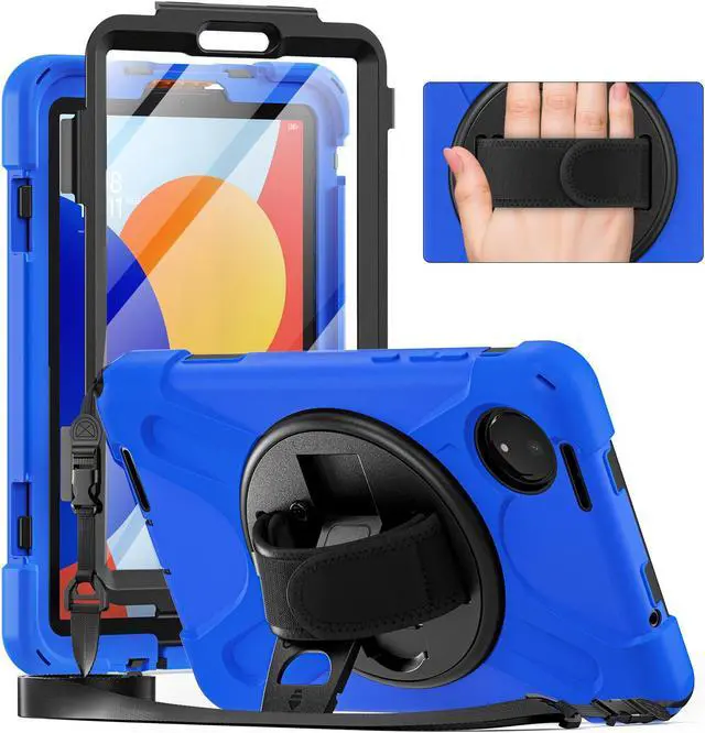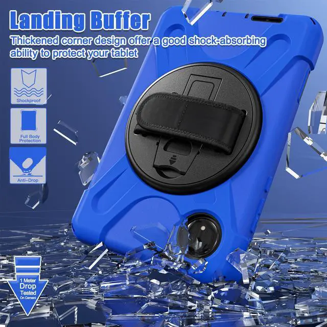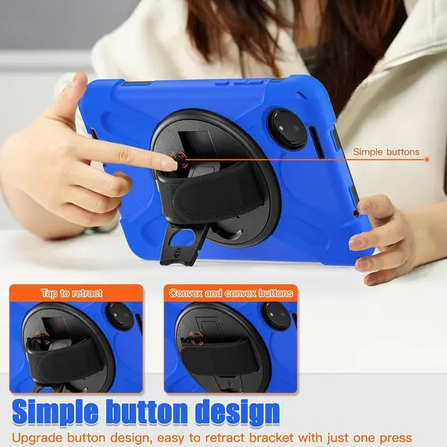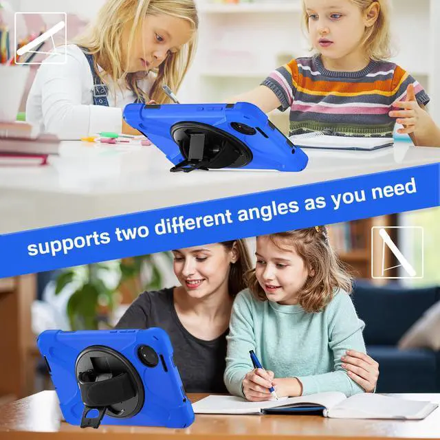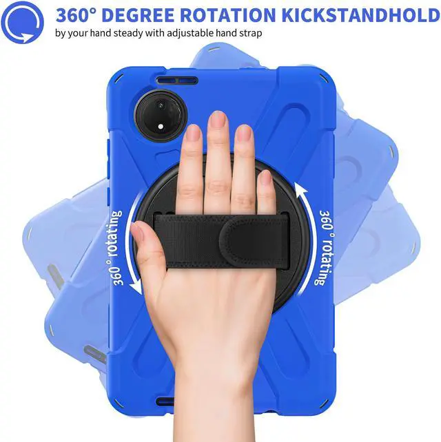 360° ROTATABLE STAND & HAND STRAP - 360° Rotatable foldable stand offers multiple angles for enjoying the most comfortable keyboard-typing, movie-viewing or draw. This sturdy kickstand can be folded when you don't need it. Ergonomically 360°Rotatable adjustable hand strap makes you hold or use your tablet easily in all directions, adjustable velcro hands strap allows big hand and small hand, perfect for kids and adults.