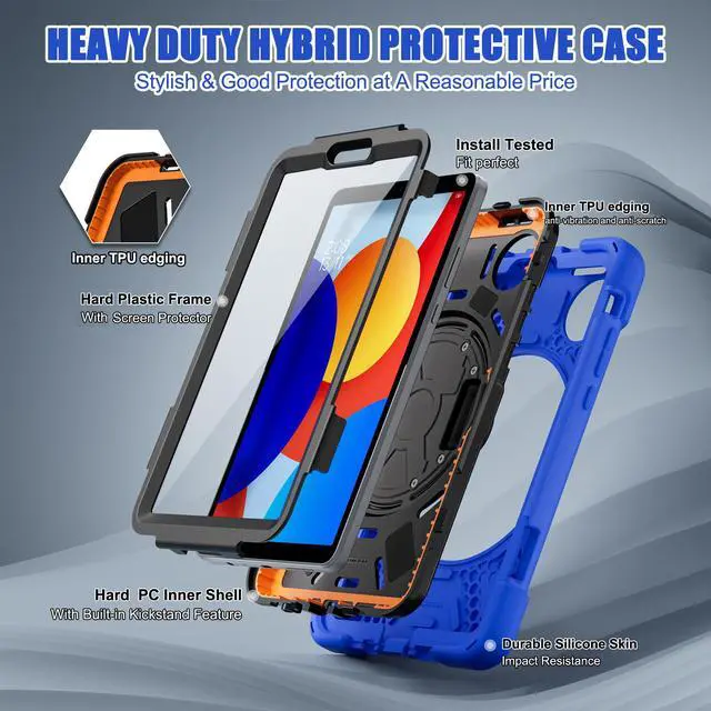 UPGRADED TRIPLE-LAYER FULL BODY PROTECTION - Advanced 3-in-1 construction, with 3 layers design silicone outer frame and 2 pieces Combination of hard reinforced inner shell. The Redmi Pad SE 8.7" case has passed the Drop Test, provides up to 7 ft drop protection, provides a full around protection against scratch, impacts and shock during daily use. All materials feature environmentally friendly and owns ROHS certification, no harms to women, men, kids, the old.