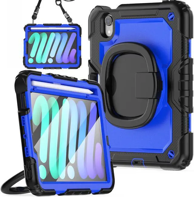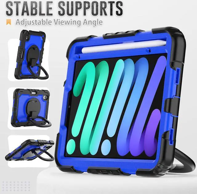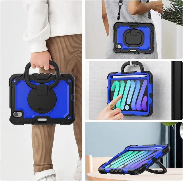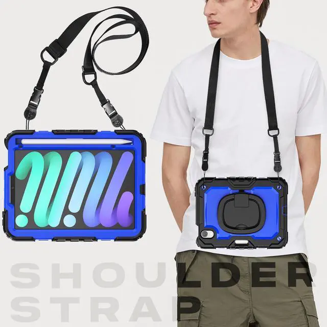 Soft Hand Strap & Portable Shoulder Strap & Rotating Stand: Provide the securest protection and more convenience when you play or work with case for iPad Mini 7 (A17 Pro)/ Mini 6. Hang it anywhere for your better entertainment, make your hands free. 360 Degree rotating Kickstand provides multi-angle viewing, with soft handle strap, easier to use your case for iPad in your outdoor travelling, working, gaming withKids