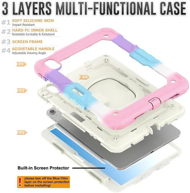 Removable and Adjustable Shoulder Strap: Comes with a removable and adjustable shoulder strap for convenient carrying, providing more convenience for outdoor activities or hanging iPad Air 11 in different positions.