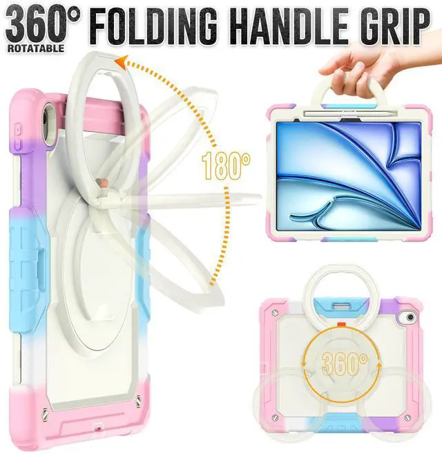 [SHOULDER & HAND STRAP]Elevate your outdoor iPad experience with the iPad Air 13-inch case featuring a shoulder strap,designed to free up hands and provide convenient outdoor carrying without the worry of accidental drops. Also features a hand strap that supports horizontal and vertical, ensuring a secure grip on the iPad during use to prevent accidental slips from hands.Stay connected and protected wherever you go with this versatile case designed for active lifestyles.