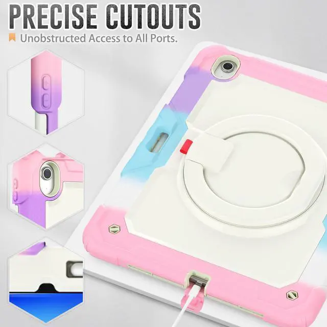 [KICKSTAND & PENCIL HOLDER] The iPad case with a rotating stand that offers multiple viewing angles, allowing you to free up your hands for studying, working, or enjoying your favorite shows. Also built-in an Apple Pencil slot, storing and retrieving your stylus is simple and secure – say goodbye to the frustration of misplacing or losing your Apple Pencil.