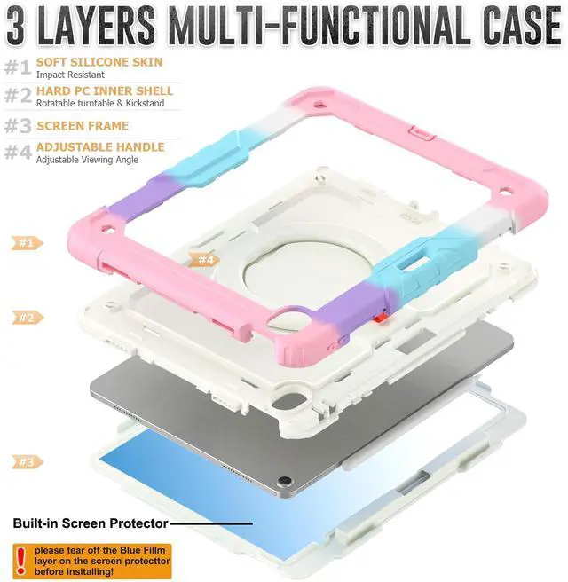 [MATERIAL & with built-in screen protector] The iPad case is made of PC+Silicone and has passed military-grade certification. It has undergone drop tests exceeding 10000+ times to ensure maximum protection for your device. Equipped with a screen protector, effectively prevents accidental scratches on your screen, keeping it safe from damage.