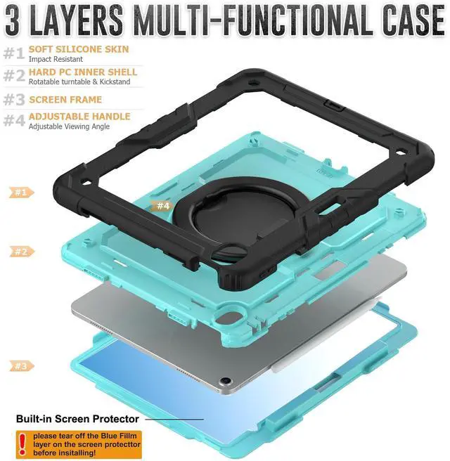 • [MATERIAL & with built-in screen protector] The iPad case is made of PC+Silicone and has passed military-grade certification. It has undergone drop tests exceeding 10000+ times to ensure maximum protection for your device. Equipped with a screen protector, effectively prevents accidental scratches on your screen, keeping it safe from damage.
