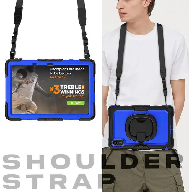 [Adjustable Shoulder Strap]: This case comes with a adjustable detachable shoulder strap, so that you can carry your tablet on neck or shoulder like a bag, or sling it on car head rest.