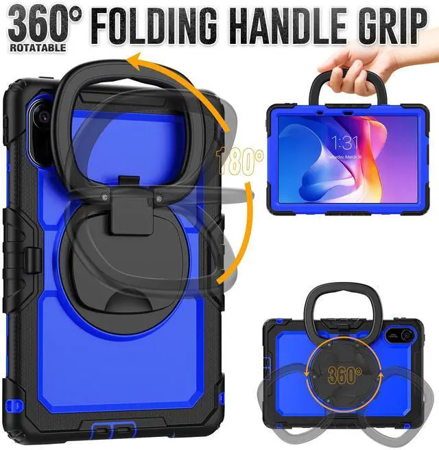 [360 Degree Rotating Kickstand & Hand Strap]: This shockproof case has a 360-degree turntable sturdy kickstand which can support your device from multiple perspectivesthe hand strap is also adjustable, securely and convenient using with one hand when in a meeting or classroom or outdoor activities.