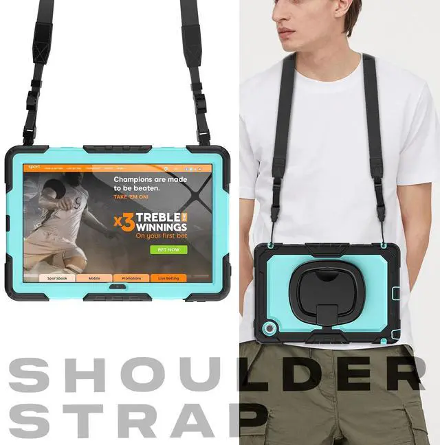 [Adjustable Shoulder Strap]: This case comes with a adjustable detachable shoulder strap, so that you can carry your tablet on neck or shoulder like a bag, or sling it on car head rest.