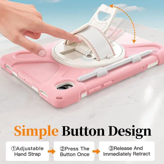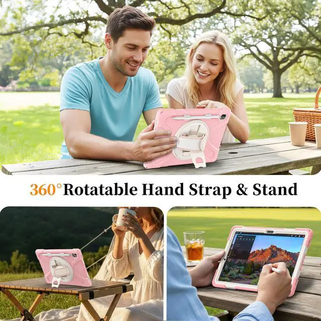 HAND STRAP & 360° rotating STAND: The tablet case that comes with a hand strap and rotating stand function. It is specifically designed for users of the tablet. The hand strap allows for easy grip and provides better stability and comfort during use. The rotating stand function enables you to adjust the tablets angle effortlessly, allowing for optimal viewing of entertainment content, video calls, or office work. Whether you are at home, in the office, or on the go.