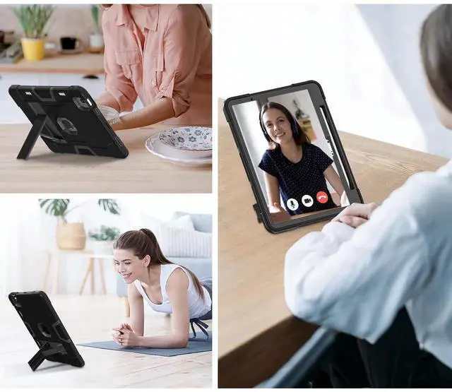 iPad Case with Built-in Kickstand --- The iPad case with built-in sturdy kickstand, offers you 2 angles like viewing and typing when you are playing or working. Free your hands and enjoy your watching or facetime with the iPad case.