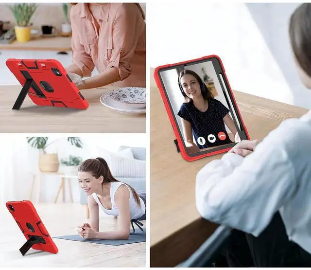 iPad Case with Built-in Kickstand --- The iPad case with built-in sturdy kickstand, offers you 2 angles like viewing and typing when you are playing or working. Free your hands and enjoy your watching or facetime with the iPad case.
