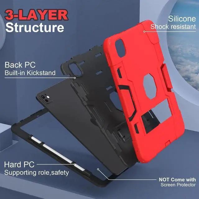 Full Body Protection & Premium Materials --- This iPad case is made of hard plastic frame + PC inner shell + durable soft Silicone (NO screen protector), the safe materials are also friendly to kids. 3-layer full body protection structure, which provides perfect protection for your iPad against drop, scratch, shock and dust.