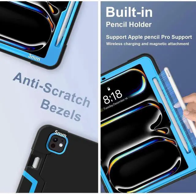 Built-in pencil holder to prevent the loss of pencils, easy to store and carry pencils. Support Apple Pencil wireless charging and pairing.