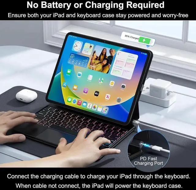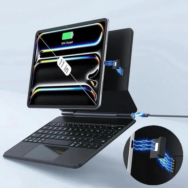 Efficient Charging Method --- When you connect the charging cable, the magic keyboard iPad pro 11 M5 M4 powers itself and simultaneously charges your iPad, which eliminates the need for a separate charger. When the cable is disconnected, the iPad will power the apple iPad pro 11-inch M5 M4 case keyboard, reducing the need to frequently plug and unplug chargers. To keep both your iPad and iPad pro M5 M4 11 inch case with keyboard in optimal power condition, ensure they are properly connected when charging.