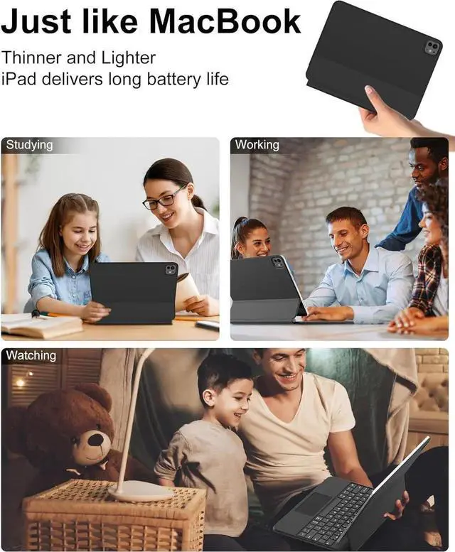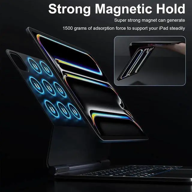 iPad Pro 11 M4 Magic Keyboard --- This smart folio keyboard case for apple iPad pro M5 M4 11 inch with shockproof TPU inner, protect your iPad from scratches, the keyboard keys has resilient, making typing more sensitive and accurate.