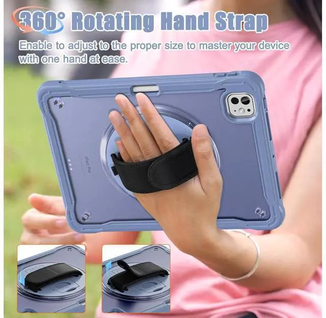 360° Rotating Hand Strap: The 360° rotating hand strap design offers secure and flexible handling options, allowing you to comfortably carry your iPad in any orientation, making it perfect for mobile professionals and students.