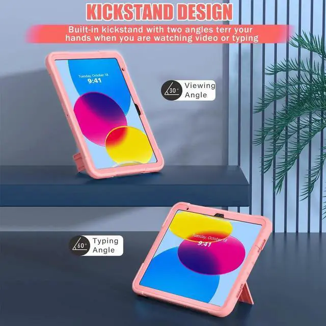 iPad Case with Built-in Kickstand --- The iPad case with built-in sturdy kickstand, offers you 2 angles like viewing and typing when you are playing or working. Free your hands and enjoy your watching or facetime with the iPad case.