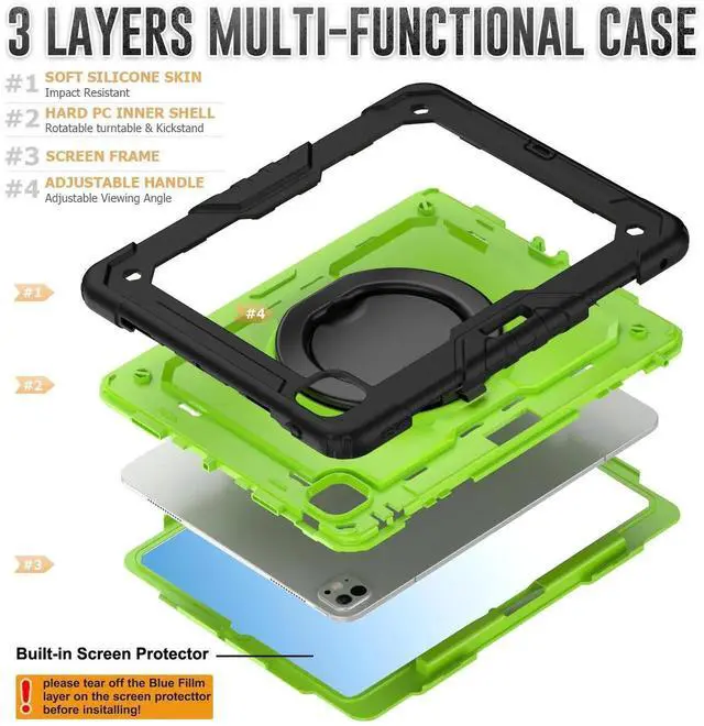 [MATERIAL & with built-in screen protector] The iPad case is made of PC+Silicone and has passed military-grade certification. It has undergone drop tests exceeding 10000+ times to ensure maximum protection for your device. Equipped with a screen protector, effectively prevents accidental scratches on your screen, keeping it safe from damage.