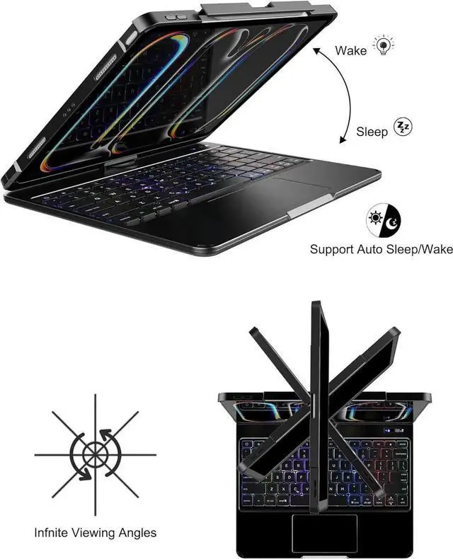 360° Rotating Stand & Multi-Angle Viewing: Enjoy full flexibility with the 360° swivel stand, offering 5 adjustable viewing angles. Whether you're typing, sketching, or watching a movie, seamlessly shift your iPad for maximum comfort and productivity in any mode.