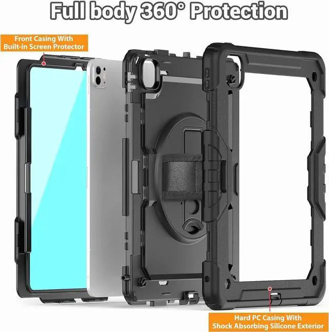 The ipad pro 13 inch case is assembled with Silicone and PC.built in screen protection;