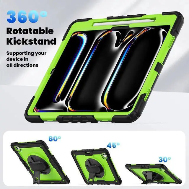 [KICKSTAND & PENCIL HOLDER] The iPad Pro 13-inch case with a rotating stand that offers multiple viewing angles, allowing you to free up your hands for studying, working, or enjoying your favorite shows. Also built-in an Apple Pencil slot, storing and retrieving your stylus is simple and secure say goodbye to the frustration of misplacing or losing your Apple Pencil. Built in Pencil Holder support iPad Pencil Wireless Charging. (Apple Pencil is NOT included)
