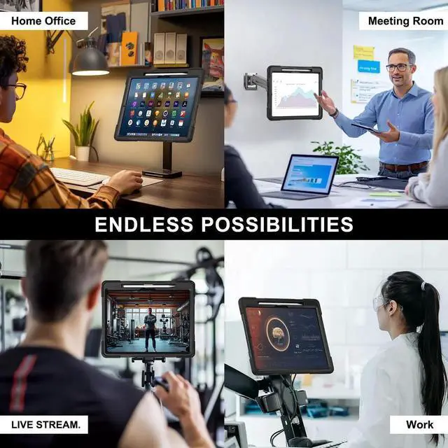 360 Degree Rotating Disk with Four VESA Mounting Holes 75*75mm -- This case comes with 360 Degree Rotating Disk with Four Screw Ports, Compatible with Screen Backside VESA Mounting Holes 75*75mm (4 Screws are included, Screw Driver and Vesa Plate are not included), Greatly free your hand when you are working. Really helpful for holding the iPad securely.