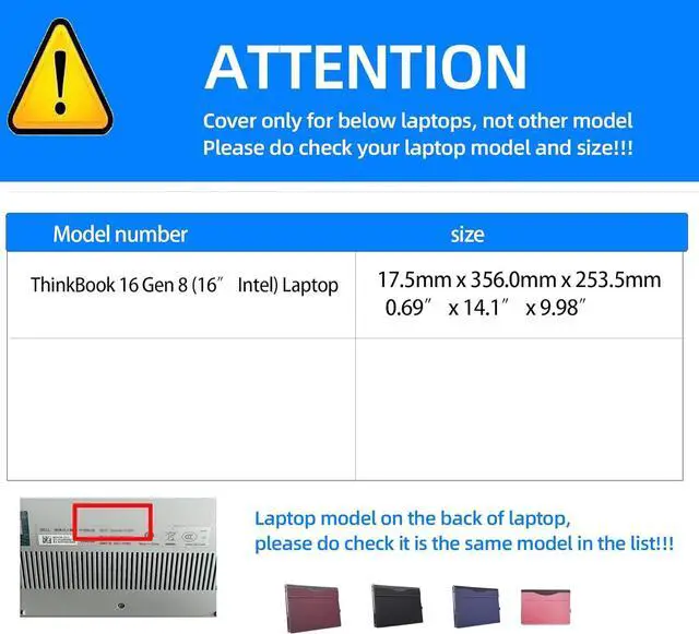 Compatible Model: Laptop Case for Lenovo ThinkBook 16 Gen 8 (16 Intel) Laptop ,cover dimensions(D X W X H): 356 x 253.5 x 17.5 mm (14.1 x 9.98 x 0.69 inches) ,not any other laptop
