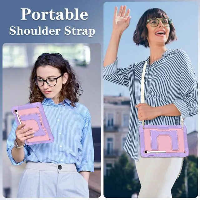 With Portable Shoulder Strap: The Removable & Adjustable shoulder strap makes your tablet more conveniently in outdoors & indoors,totally relieve your hands;It can also be hung on car seatsm,add more fun to your children's journey.