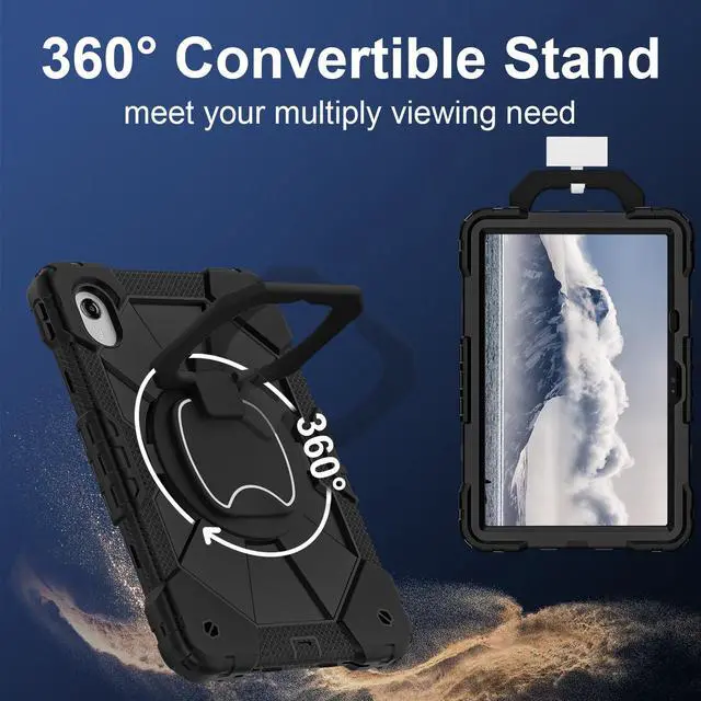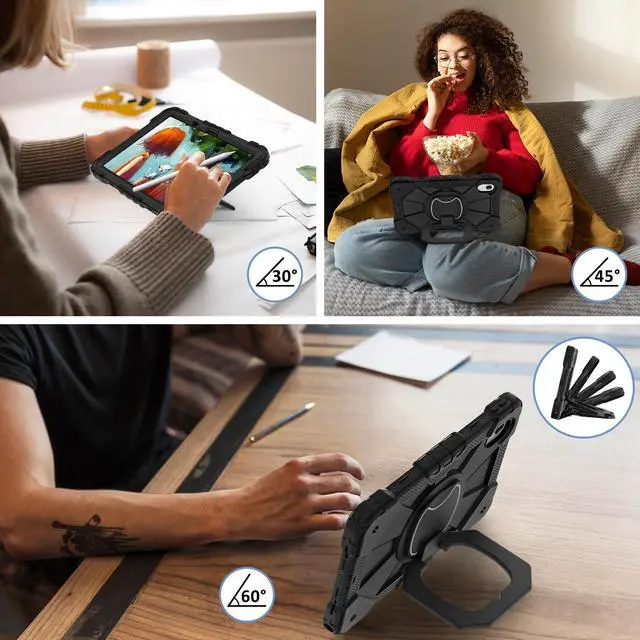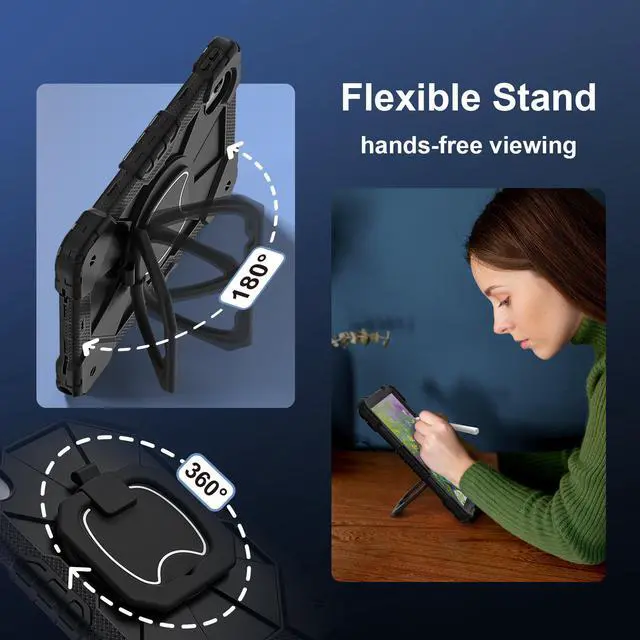 With Rotatable Kickstand & Pencil Holder: Functional case with 360° rotating kickstand that allows you to easily prop tablet up for hands-free vieiwng in landscape/portrait mode. The stand doubles as a handle to provide a secure grip, easy to hold or carry your tablet during work, travel, or classroom use; Built-in pencil holder,easily to carry your pencil with your device. (Note: Screen Protector & Pencil are not included!)