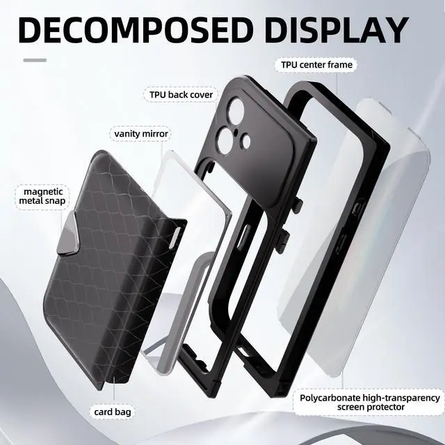 Multifunctional Design: Equipped with a portable makeup mirror, a card slot, and a leather strap, this case offers a stylish and practical solution for your everyday needs.