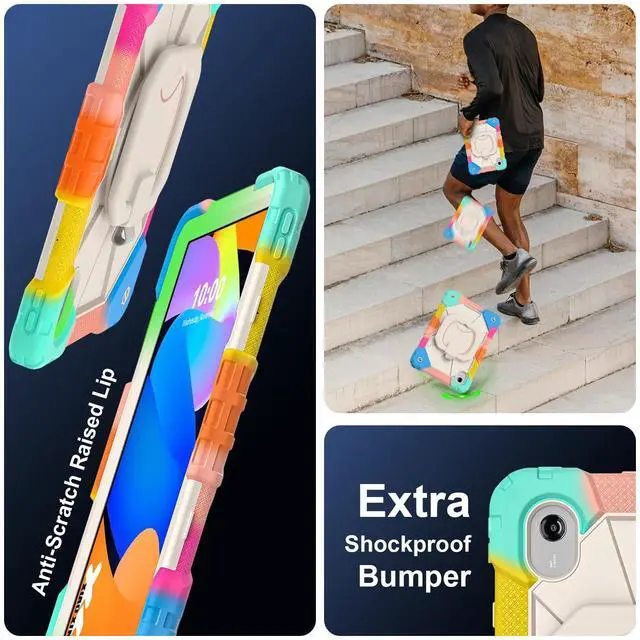 Military-Grade Drop Protection: Hybrid 3-layer Ultimate Protection,Inner Hard Plastic with Outer Soft Silicone,raised design on corners provide military level protection for your tablet from shock absorption and scratches.Safe friendly for kids. (CASE Without built-in screen protector!!!)
