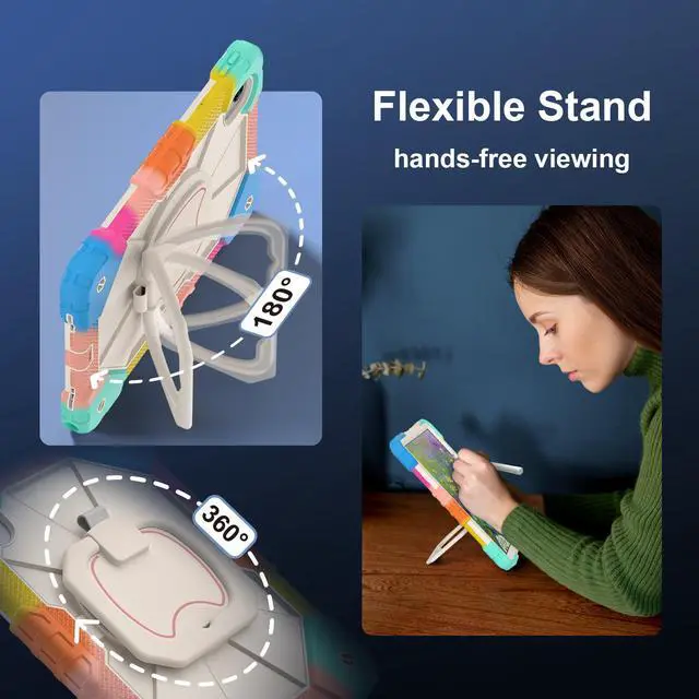 With Portable Shoulder Strap: The Removable & Adjustable shoulder strap makes your tablet more conveniently in outdoors & indoors,totally relieve your hands;It can also be hung on car seatsm,add more fun to your children's journey.